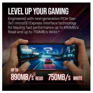 • IZBOLJŠAJTE SVOJE IGRE: Zasnovan s tehnologijo PCIe Gen 3×1 microSD Express naslednje generacije za doseganje izjemno hitre zmogljivosti do 890 MB/s pri branju in do 750 MB/s pri pisanju.²