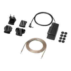 - Vključuje napajalnik z adapterji za tri mednarodne vtiče ter 2,0 m zvočniški kabel