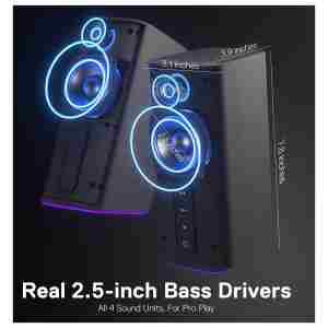 Močni nizki toni z 2,5-palčno zvočno enoto – GS814 je opremljen s štirimi naprednimi zvočnimi enotami (bass/treble x 2) z izboljšanim stereo jedrom polnega razpona 2.0 kanala, kar vam omogoča, da se povsem potopite v glasbeno doživetje!