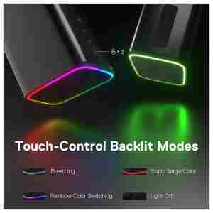 Enostavno upravljanje na dotik – S posameznimi štirimi gumbi za upravljanje na dotik lahko učinkovito in natančno prilagajate funkcije zvočnikov. Z lahkoto prilagajate glasnost, preklapljate med načini AUX/BT in prejšnjimi ter naslednjimi skladbami.