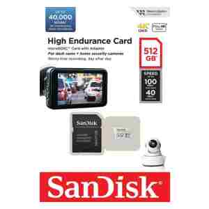 SanDisk High Endurance microSD kartica je zasnovana za avtomobilske kamere in sisteme za video nadzor, kjer je ključno neprekinjeno in zanesljivo snemanje. Namenjena je dolgotrajni uporabi ter brez težav prenaša stalno pisanje in prepisovanje, saj kapaciteta 512 GB omogoča do 40.000 ur snemanja. Ponuja dovolj prostora za shranjevanje več posnetkov med posameznimi prepisovanji in je odporna na vodo, udarce, temperaturna nihanja ter rentgenske žarke. S hitrostnimi razredi Class 10, U3 in V30 omogoča snemanje v ločljivosti Full HD ali 4K, hitrosti branja do 100 MB/s pa poskrbijo za hiter prenos in varnostno kopiranje podatkov.
