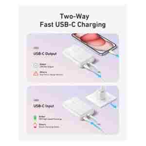 - 30W dvosmerno polnjenje: S hitrim USB-C polnjenjem v obe smeri uživajte v do 30W izhodni moči in 20W vhodni moči, kar zagotavlja hitro napajanje vaših naprav. (Opomba: Združljivo z iPhone 16/15 serijo, MacBook, Galaxy, iPad, Switch, Steam Deck in drugimi.)
