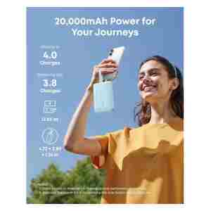 20.000 mAh prenosna moč: Idealno za potovanja – ta kompaktna zunanja baterija tehta le pribl. 364 g. Omogoča do 4 polnjenja iPhone 16, tako da ostanete napolnjeni brez odvečne teže.