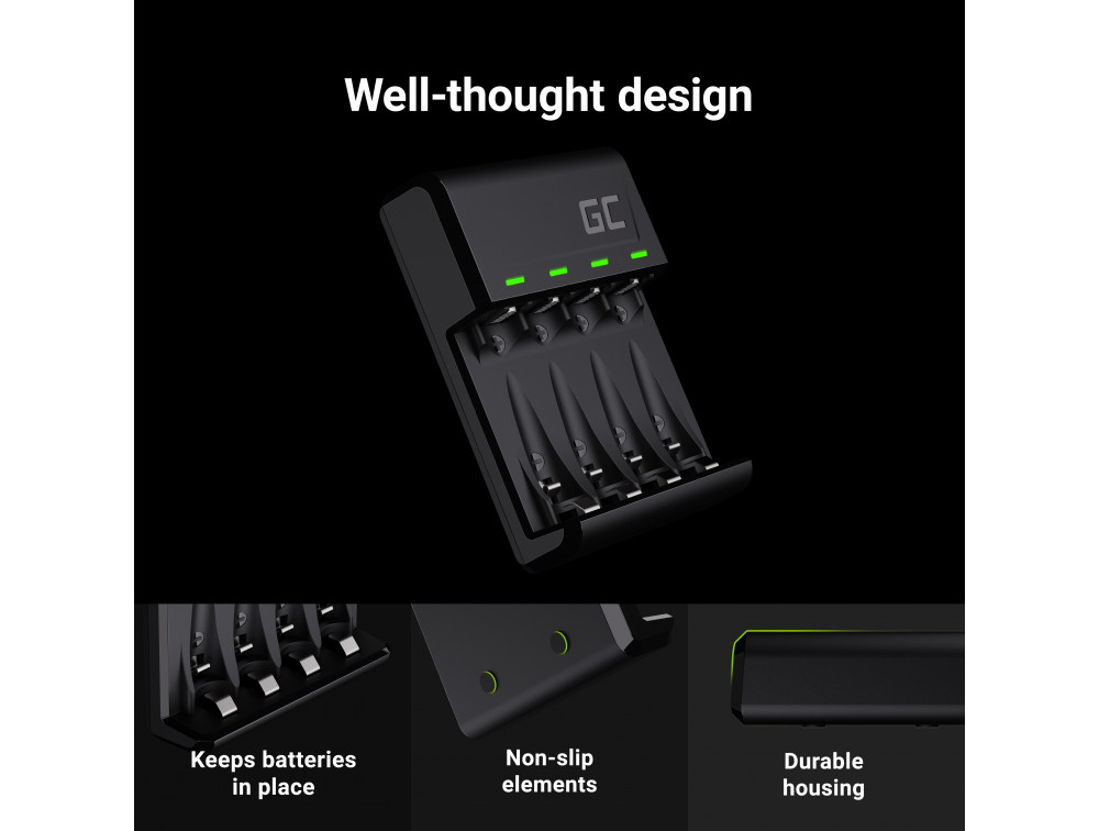- Polnilec GC VitalCharger (USB-C / Micro USB) za polnilne baterije AA / AAA – napolnite svoje baterije kjerkoli prek USB-priključka.