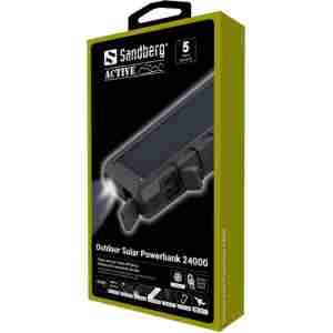 Podatki o pakiranju: 1x Sandberg Outdoor Solar Powerbank 24000 mAh, 1x USB-C kabel 30 cm, 1x MicroUSB kabel 30 cm, 1x karabin, 1x navodila za uporabo