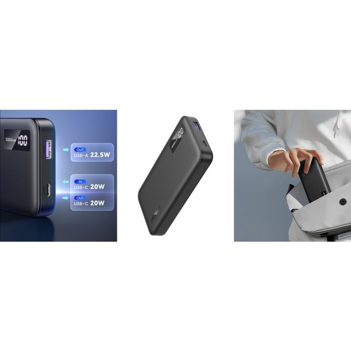 Ugreenov prenosna baterija ima kapaciteto 10000 mAh, ki lahko zagotovi približno 2 polnjenji navadnega mobilnega telefona.