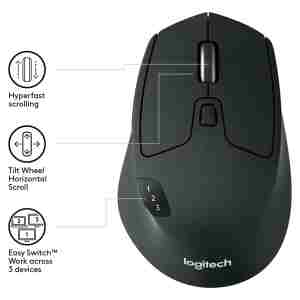 Dodatno: Enostavno in hitro preklaplanje med uporabo na 3 različnih računalnikih, oblika za desničarje, Hitro premikanje drsnikov s koleščkom (Hyper-Fast scrolling), 1x AA bateriji (življenska doba do 24 mesecev)