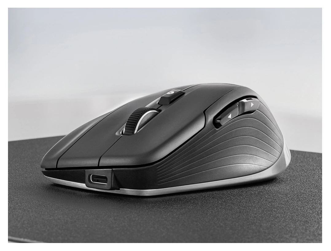 CadMouse Compact Wireless se ponaša s trojno povezljivostjo. Povežete jo lahko žično z USB-A kablom ali brezžično prek USB-A 2,4 GHz sprejemnika 3Dconnexion Universal Receiver oz. tehnologije Bluetooth.