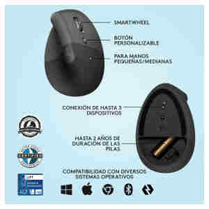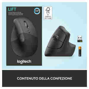 Udobna miška nudi ergonomsko oporo manjšim in srednje velikim dlanem. Vertikalna miška Lift nudi bolj naravno držo zapestja med uporabo računalniške miške. Dlan na miški sloni po kotom 57°.