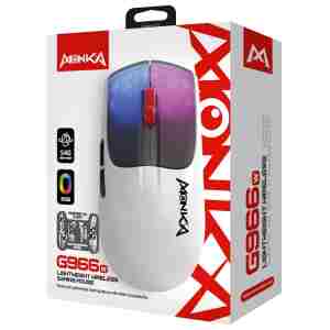 Brezžična igralna miška Monka Vero G966W združuje eleganten dizajn z napredno tehnologijo za vrhunsko igralno izkušnjo. S svojo trojno povezljivostjo – žično prek USB-C, brezžično prek 2,4 GHz in Bluetooth – omogoča prilagodljivost glede na vaše potrebe. Vgrajeni senzor PAW3325 zagotavlja natančnost z nastavljivo ločljivostjo do 10.000 DPI, kar omogoča hitro in natančno sledenje. Miška tehta le 54 gramov, kar prispeva k hitrim in lahkotnim gibom med igranjem. RGB osvetlitev z 7 različnimi načini osvetlitve dodaja estetsko privlačnost in omogoča prilagoditev vzdušja glede na vaše želje. Vzdržljivi stikali z življenjsko dobo do 20 milijonov klikov zagotavljajo dolgotrajno zanesljivost. Z baterijo kapacitete 300 mAh omogoča do 40 ur neprekinjene uporabe. Miška ima 6 programsko nastavljivih gumbov, kar omogoča prilagoditev funkcij glede na vaše potrebe. Dimenzije miške so 120 x 65 x 42 mm.