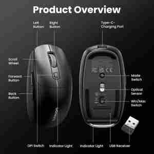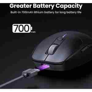 Miška UGREEN ima vgrajeno 700mAh baterijo in se lahko polni preko univerzalnega USB-C priključka.
