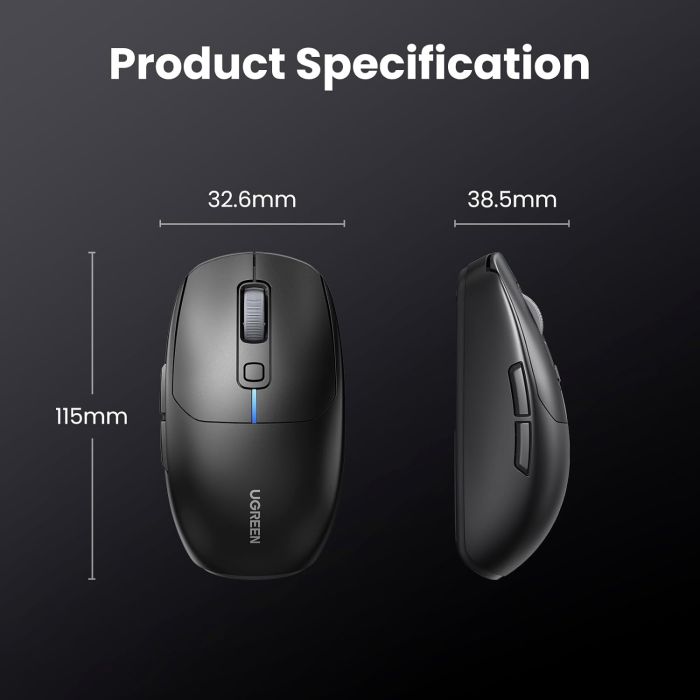 Spoznajte brezžično miško UGREEN v elegantni črni barvi.
