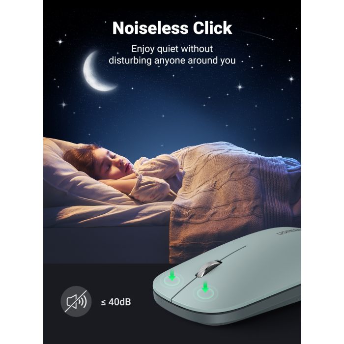 Ta tiha brezžična miška za prenosni računalnik z brezšumno zasnovo je izjemno tiha, ne glede na to, ali kliknete gumb, se pomikate ali premikate miško, je idealna miška za računalnik, konferenčno sobo, kavarno, knjižnico, spalnico.