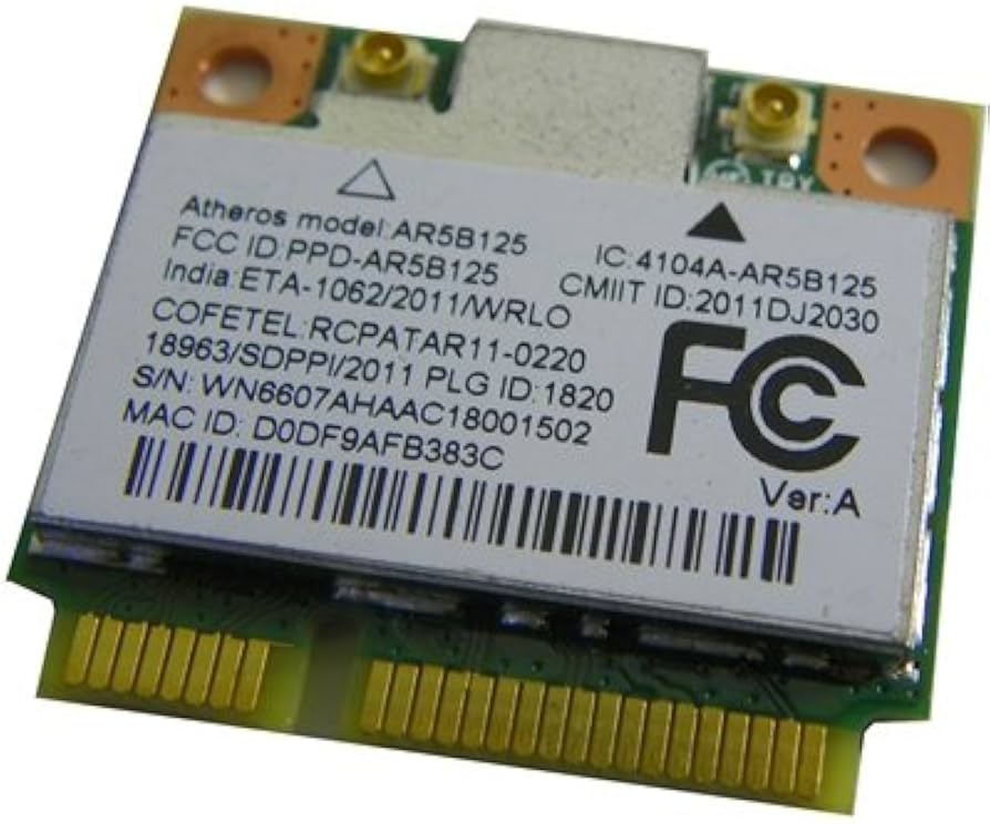 WiFi kartica (wireless card – WLAN modul) za prenosnike z Mini PCIe režo. Omogoča brezžično povezavo (WiFi) na omrežje.