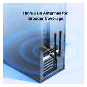 Širša pokritost signala – povežite se z Wi-Fi v več delih doma z dvema zunanjima visoko ojačevalnima antenama, ki zagotavljata večjo pokritost in večjo stabilnost