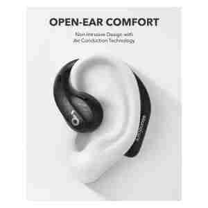 čezusešne AeroFit Pro uporabljajo nevsiljivo zasnovo, ki odpravlja nelagodje in vam omogoča, da uživate v izkušnji poslušanja, ki diha. Zračna prevodnost zagotavlja bogatejši zvok, boljši od kostne prevodnosti. - Mehki, oprijeti in stabilni: