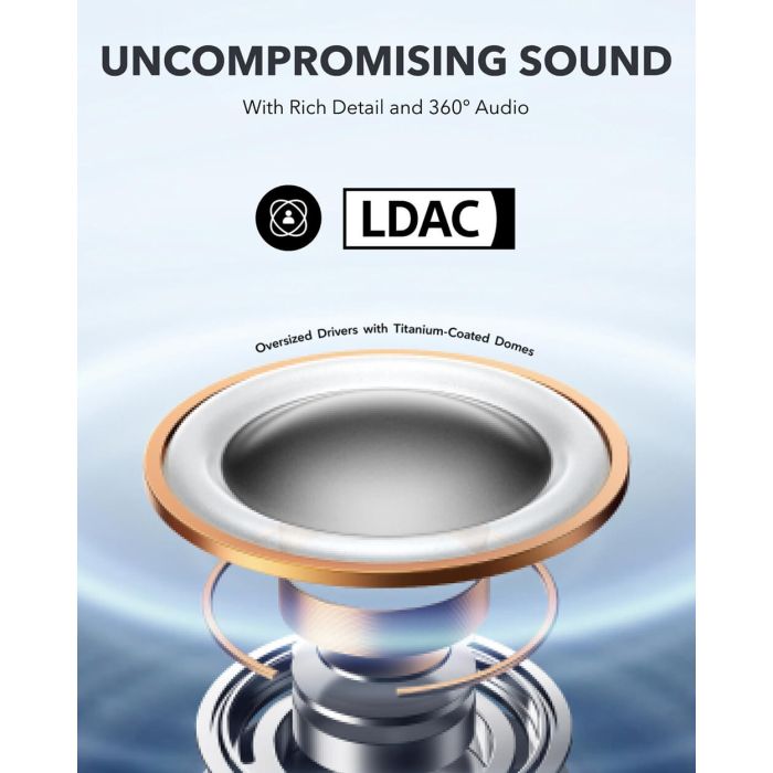 slušalke AeroFit Pro imajo 16,2 mm veliko membrano, prevlečeno s titanom, za robusten bas in pravi prostorski zvok. S podporo za tehnologijo LDAC ponuja glasbo visoke ločljivosti in nepričakovano kakovost zvoka.