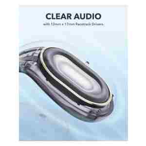 - Čist zvok: soundcore C30i se ponaša z velikimi gonilniki velikosti 12 mm × 17 mm. Skupaj z membrano, prevlečeno s titanom, lahko uživate v čistem zvoku.