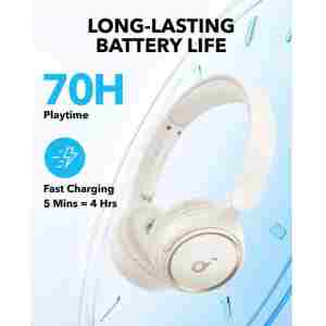 nikoli ne ustavite glasbe z impresivno 70-urno življenjsko dobo baterije z enim polnjenjem. Izkusite bliskovito hitro polnjenje s soundcore H30i, ki vam omogoča 4 ure predvajanja s hitrim 5-minutnim polnjenjem. - Lahke in udobne: