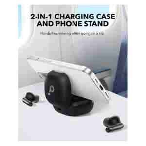 brezžične ušesne slušalke soundcore P40i imajo edinstveno etui za polnjenje, ki služi tudi kot stojalo za telefon, kar vam omogoča prostoročno uživanje v predstavah večnamenska zasnova izboljša vašo video izkušnjo, ko ste na poti.