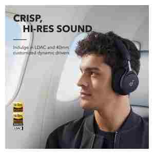 prilagojeni 40 mm dinamični zvočni gonilniki Space One podpirajo LDAC za brezžični zvok visoke ločljivosti in zagotavljajo trikrat večjo natančnost v primerjavi s standardnimi kodeki Bluetooth za podrobno poslušanje – brez prepletenih kablov. - 40 ur predvajanja ANC: