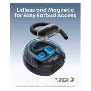 - Elegantna, prihodnosti pripravljena zasnova: Prosojna polnilna škatlica vključuje močne magnete, ki preprečujejo nenamerno izgubo, ter svetlobno vrstico, ki vas sproti obvešča. Uživajte v glasbi v slogu – kjerkoli ste – z oblikovno dovršenim, kompaktnim in prenosnim dizajnom.