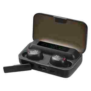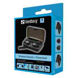 Sandberg Wireless Earbuds + Powerbank so elegantna in funkcionalna rešitev za mobilne uporabnike. Brezžične slušalke z Bluetooth 5.1 podpirajo TWS stereo zvok na razdalji povezave do 10 m ter multi‑point povezljivost. Vsaka slušalka ima baterijo 50 mAh za do 6 ur neprekinjega delovanja ter do 280 ur v pripravljenosti. Polnilni etui z zmogljivostjo 2000 mAh služi tudi kot prenosna baterija za telefon ali drugo USB napravo. Vgrajen zaslon prikazuje stanje napolnjenosti ohišja, komplet pa vključuje zamenljive ušesne čepke in USB kabel za polnjenje.