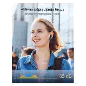 -35dB aktivno odpravljanje hrupa in prehod skozi: Z našo napredno tehnologijo 35dB aktivnega odpravljanja hrupa (ANC) se potopite v poglobljen zvok brez šumov. Uživajte v zmogljivi tehnologiji ANC, ki odpravlja hrup iz ozadja in izboljša vašo zvočno izkušnjo. Bodite pozorni na svojo okolico s priročnim načinom prehoda, ki vam omogoča, da slišite pomembne zvoke, ne da bi odstranili slušalke Bluetooth. Naše slušalke z odpravljanjem šumov uporabljajo tehnologijo ENC (Environmental Noise Cancellation) s 4 mikrofoni, ki zagotavlja kristalno čiste telefonske pogovore, saj zmanjšuje hrup iz okolice.