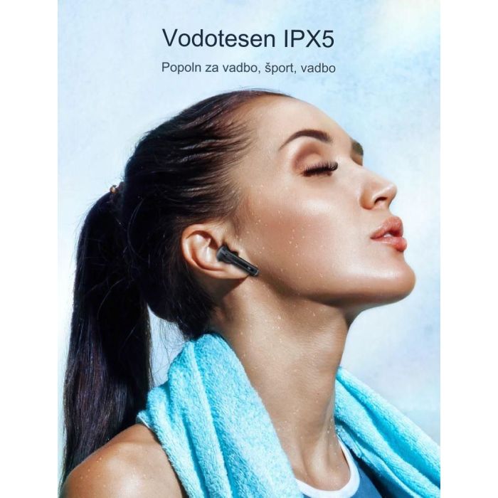 -24H časa predvajanja in vodoodpornost IPX5: Z enim polnjenjem lahko uživate v neprekinjenem predvajanju glasbe do 6 ur, s priloženo polnilno torbico pa dobite dodatnih 18 ur predvajanja, kar skupaj zagotavlja 24 ur neprekinjenega poslušanja. Naše slušalke so kot nalašč za aktivne posameznike, saj so vodoodporne po standardu IPX5, zato so odporne na znoj, dežne kaplje in brizganje, kar vam omogoča, da med intenzivnimi treningi, športnimi dejavnostmi in vajami uživate v svojih najljubših melodijah.