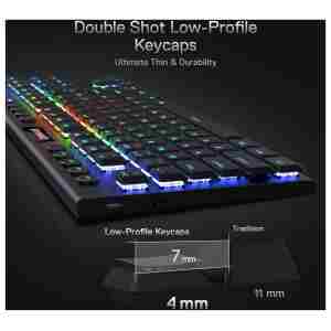80 % TKL Low-Profile: Kompaktna tipkovnica z 87 tipkami v nizkoprofilni obliki zagotavlja več prostora za premikanje miške in krajšo razdaljo aktiviranja. Zagotavlja natančno delovanje pri pol manjši višini, hkrati pa ohranja stil preproste elegance.