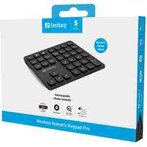 Podatki o pakiranju: 1x Sandberg Wireless Numeric Keypad Pro, 1x polnilni kabel USB-A – USB-C, 1x USB brezžični sprejemnik, 1x navodila za uporabo