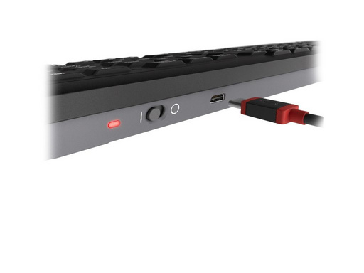 Komplet je opremljen s polnilnimi NiMH baterijami, ki nudijo več mesecev uporabe med polnjenji. Za polnjenje se miško in tipkovnico priklopi na USB-C kabel. Med polnjenjem se komplet lahko uporablja nemoteno.