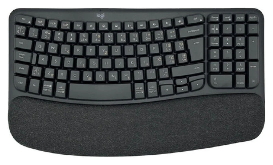 Logitech Wave Keys je oblikovana kot val, ki dlani razporedi v bolj naravno držo med tipkanjem. Dolgotrajna uporaba je tako bolj udobna, veliko naslonjalo iz troplastne spominske pene pa poskrbi za razbremenitev zapestij.