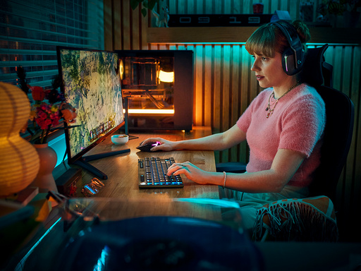 LIGHTSYNC RGB ponuja približno 16,8 milijona barv za prilagojeno osvetlitev, osebne teme in povezano opremo prek G HUB. Osvobodite svojo ustvarjalnost za popolnoma poglobljeno igralno izkušnjo.