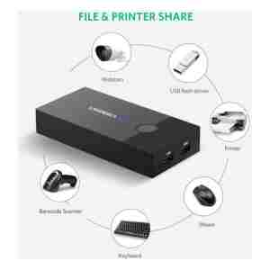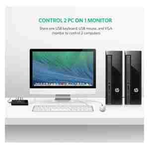 Ugreen 2-vratna USB KVM stikalna omarica vam omogoča nadzor 2 računalnikov z enim nizom krmilnikov (miška in tipkovnica).