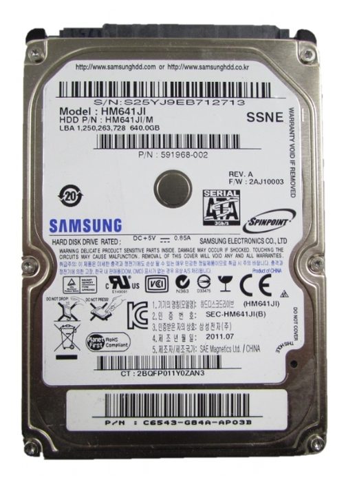 Samsung 640 GB 2,5″, model HM641JI, 8MB, 5400 rpm.