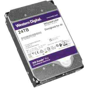 WD WD240PURP iz serije Purple Pro je namenjen najzahtevnejšim video nadzornim sistemom in AI analitiki. Disk ponuja 24 TB kapacitete, SATA 6 Gb/s, 7200 RPM in 512 MB predpomnilnika. Namenjen je neprekinjenemu 24/7 delovanju z delovno obremenitvijo do 600 TB/leto. Tehnologija AllFrame AI zmanjša izgube sličic, podprti sta do 64 HD kamer in 32 AI tokov, optično varčuje z energijo in ščiti podatke v večdisčnih sistemih. MTBF znaša 2,5 milijona ur.