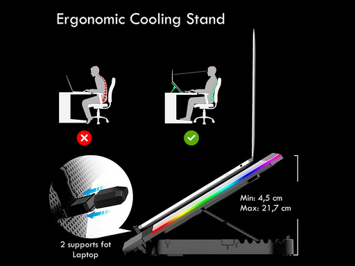 - Zagotavlja odlično hlajenje prenosnika do velikosti 17,3″