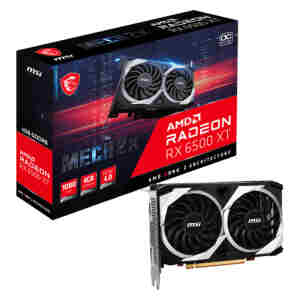 MSI RADEON RX 6500 XT MECH 2X 4G OC. Družina grafičnega procesorja: AMD, GPU: Radeon RX 6500 XT. Pomnilnik diskretnega grafičnega adapterja: 4 GB, Vrsta pomnilnika grafične kartice: GDDR6, Širina pomnilniškega vmesnika: 64-bit, Frekvenca pomnilnika: 1800 MHz. Največja ločljivost: 7680 x 4320 slikovnih pik. Različica DirectX: 12.0, različica OpenGL: 4.6. Vmesnik: PCI Express 4.0 Hlajenje: Aktivno, Število ventilatorjev: 2 ventilatorja
