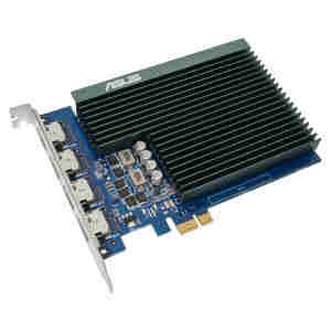 ASUS GeForce GT 730 s 4 vmesniki HDMI in pasivnim hlajenjem za tiho delo z več monitorji.