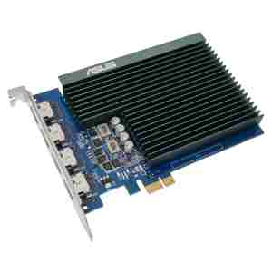 ASUS GeForce GT 730 s 4 vmesniki HDMI in pasivnim hlajenjem za tiho delo z več monitorji.