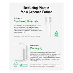 - Zasnova na biološki osnovi: Zunanjost ohišja kabla je izdelana iz materialov na biološki osnovi iz rastlin, kot sta koruza in sladkorni trs.