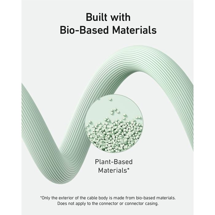 - Zasnova na biološki osnovi: Zunanjost ohišja kabla je izdelana iz materialov na biološki osnovi iz rastlin, kot sta koruza in sladkorni trs.