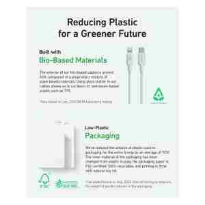 - Zasnova na biološki osnovi: Zunanjost ohišja kabla je izdelana iz materialov na biološki osnovi iz rastlin, kot sta koruza in sladkorni trs.