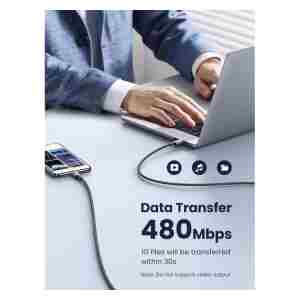 Kot podatkovni kabel USB C je njegova hitrost prenosa podatkov do 480 Mb/s med telefonom in prenosnikom. Opomba: ta kabel USB 2.0 ne podpira video izhoda.