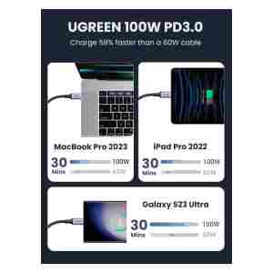 vgrajen pametni čip E-marker, kabel UGREEN USB C lahko poveča hitrost polnjenja za 80 % in stabilnost polnjenja za 90 %, kar vam zagotavlja varnejšo in stabilnejšo izkušnjo polnjenja.