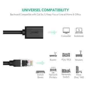 VISOKA HITROST PRENOSA: pasovna širina do 550 MHz zagotavlja hiter prenos podatkov za strežniške aplikacije, storitve v oblaku, video nadzor in pretakanje spletnih video posnetkov visoke ločljivosti. Uporablja se za povezovanje kabla UTP, FTP in STP Cat 6, ki je tudi združljiv s kablom Cat 5, 5e. Podaljšek rj45 se univerzalno poveže z omrežnimi komponentami LAN, kot so osebni računalniki, računalniški strežniki, tiskalniki, usmerjevalniki, predvajalniki omrežnih medijev, NAS, telefoni VoIP, naprave PoE, vozlišče, DSL, Xbox, PS2, PS3 itd. .
