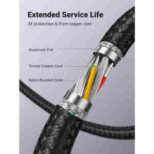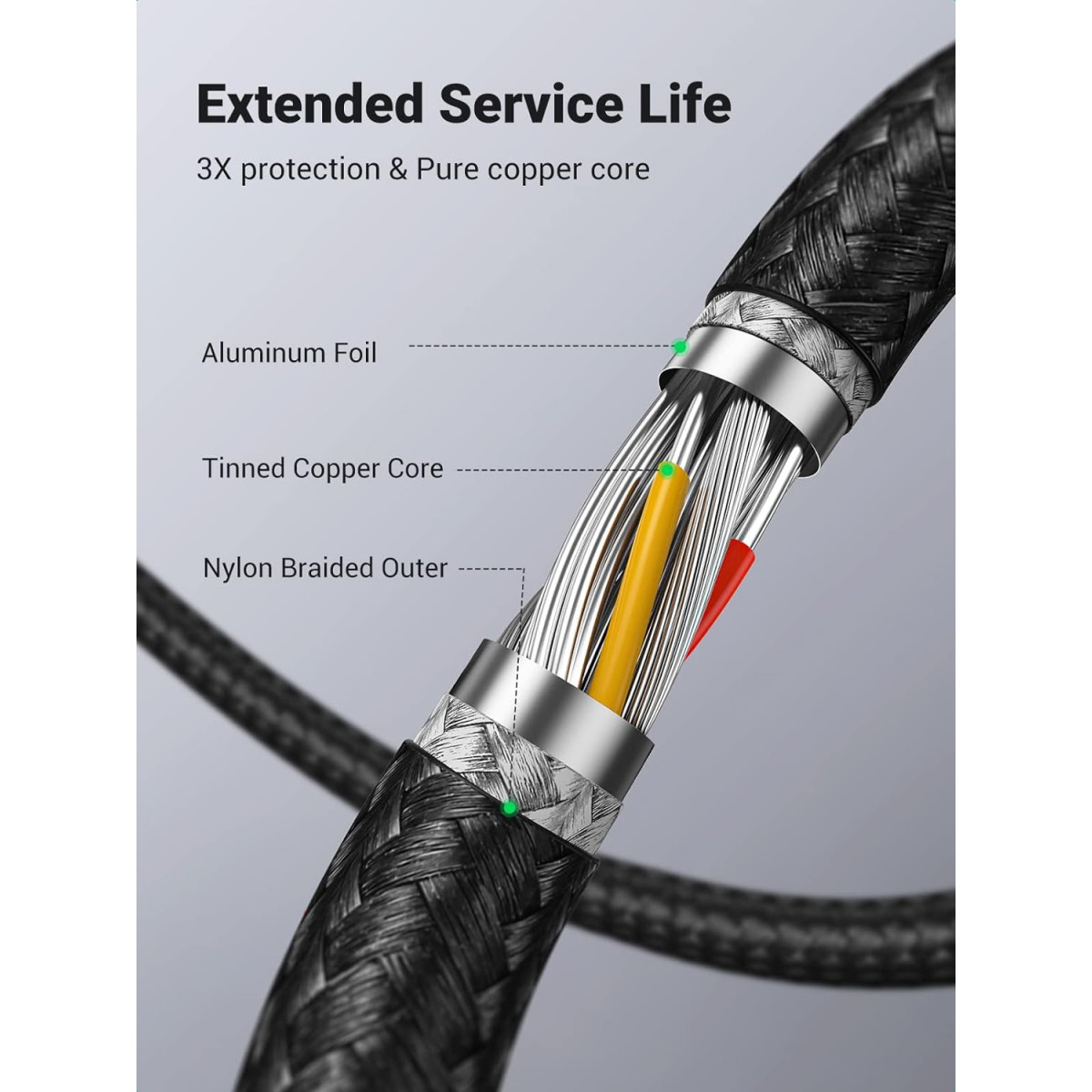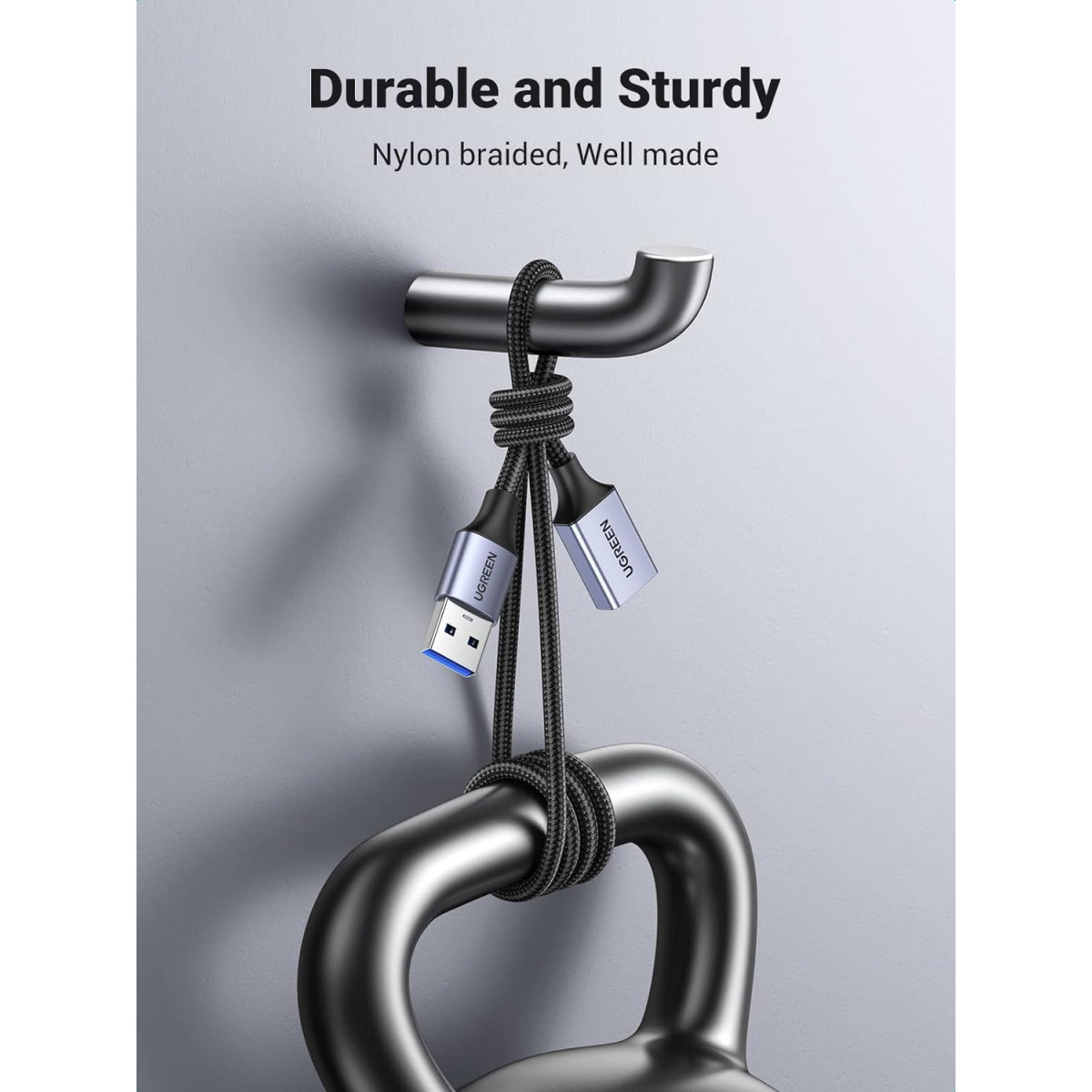 s pletenim oklopom in priključkom iz aluminijeve zlitine je podaljšek USB UGREEN izjemno trpežen in trden. Izdelan je tudi z več plastmi zaščite za zmanjšanje motenj in je odporen proti koroziji za optimalno jasnost signala, kar učinkovito podaljšuje življenjsko dobo kabla