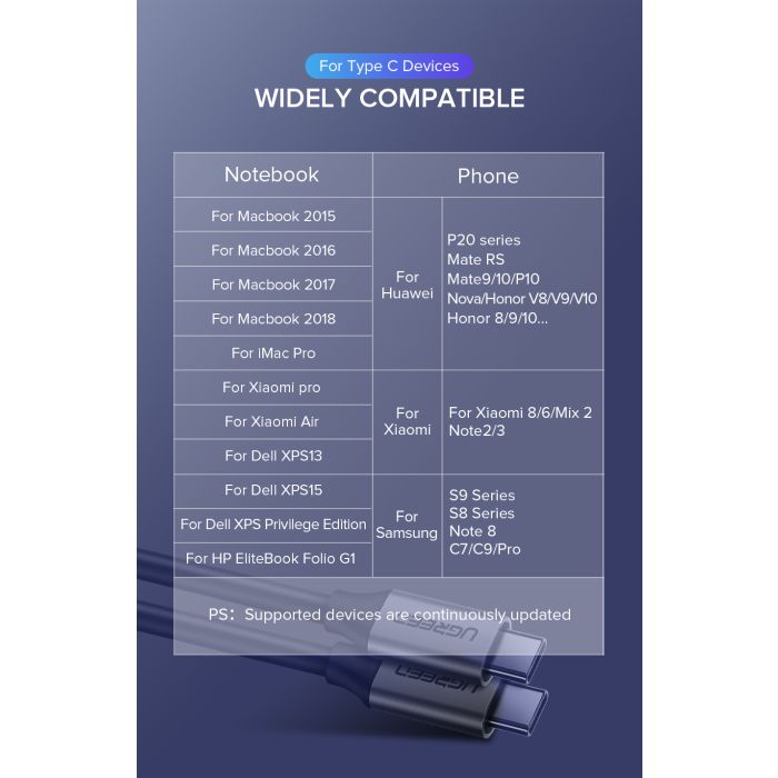 Kompatibilen je tudi za MacBook 12″ 2017/2016/2015, MacBook Pro 13″ 2019/2018/2017/2016, MacBook Air 13″ 2019/2018, Huawei Matebook X Pro, Google Chromebook Pixel, Dell XPS 13, Lenovo Yoga 900 720, Razer Blade Stealth 2018, ASUS ZenBook 3, HP