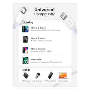 UGREEN Lightning Cable uporablja čip s certifikatom MFi in priključek C94 Lightning za zagotavljanje varnega in hitrega polnjenja za naprave, ki podpirajo PD, in je popolnoma združljiv s sistemi iOS brez skrbi zaradi pojavnih sporočil o napakah.